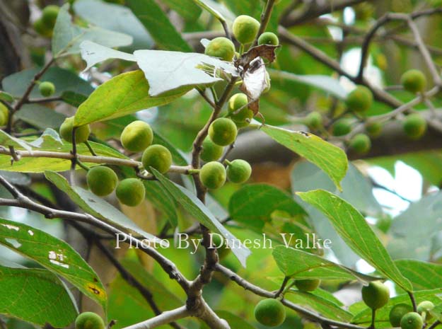Theerakam is a deciduous tree, up to 70 ft tall, native to parts of Africa, Arabian Peninsula and India. The tree has smooth grey bark. Alternately arranged, ovate-elliptic leaves have a very rough surface, making them look like sand paper. Young leaves are often lobed. Sap is sticky, not milky. Figs arise in leaf axils, 1-2 in number. They are spherical or obovoid, 1-1.5 cm in diameter, rough, yellow, orange or red. The figs may still be seen on the tree when it has shed the leaves.