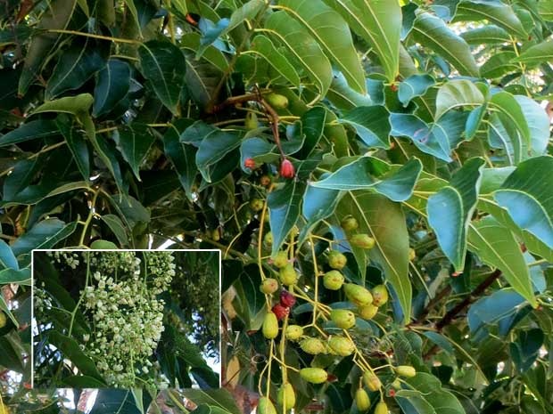 Candanaveemp is a large deciduous tree generally with a wide spreading and handsome crown attaining a height of 45 m and a stem diameter of 2 m. In cities may be of a much smaller stature. Also known as Red Cedar, Toon is famous for it’s fragrant red wood that is much sought after for use in furniture making, building and ornamental woodwork. The soft wood is easily worked and polishes to a rich red that is enhanced with age. Flowers are white, fragrant, in a large pyramidal panicle at the ends of the branchlets. Individual flowers about 5 mm long. Flowering period is in spring. Leaves are alternate, pinnate, consisting of five to seventeen leaflets. Leaflets opposite or irregularly alternate, ovate-lanceolate, 4-13 cm long, often drawn out to a long point at the tip, unequal at the base. Green both surfaces, paler beneath, red and downy when young.